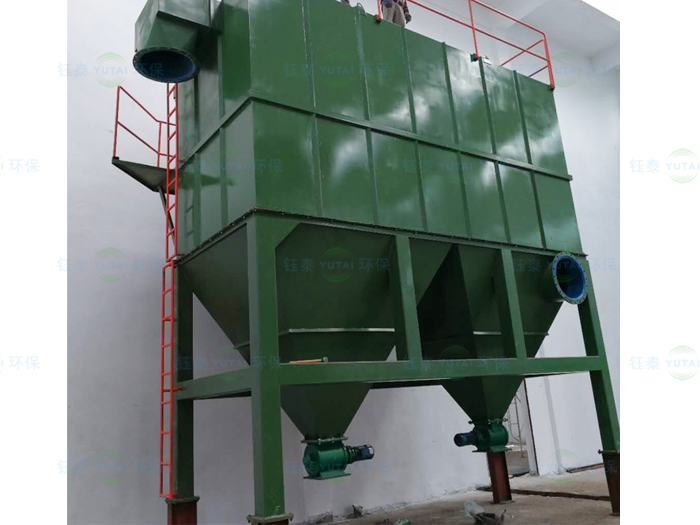 但由于電爐的投料不規則和溫度的不穩定,有可能會造成含有火星的、燃燒不充分的顆粒物帶到布袋除塵器里面,造成布袋的燒毀,因此,我們在布袋除塵器前邊增加旋風分離裝置,利用旋風的離心力,來降低火花到布袋除塵器的風險,另一方面還可以起到降溫的效果。