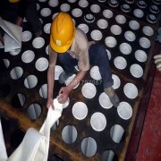 近日,我公司接到山西太水泥廠窯尾除塵器更換除塵布袋項目,此次更換的布袋為高溫覆膜氟美斯布袋,在布袋的安裝過程中要注意布袋的保護,不可為趕緊工期不按要求安裝,防止覆膜在安裝過程中損壞。安裝完畢后要進入除塵器底部觀察布袋的底部是否充實,防止漏裝袋籠的下半