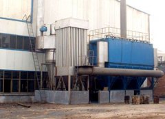 中頻電爐通常工作狀態下,每套電爐2個爐體為熔化/保溫交替作業,所需處理煙氣量一般可分別按100%和30%考慮,混合煙氣溫度可按<130℃設計。電爐除塵系統采用旋風+布袋過濾兩級干法除塵工藝,即每臺電爐煙氣經一定長度的管道順序進入一級旋風除塵器去除粗顆粒 -